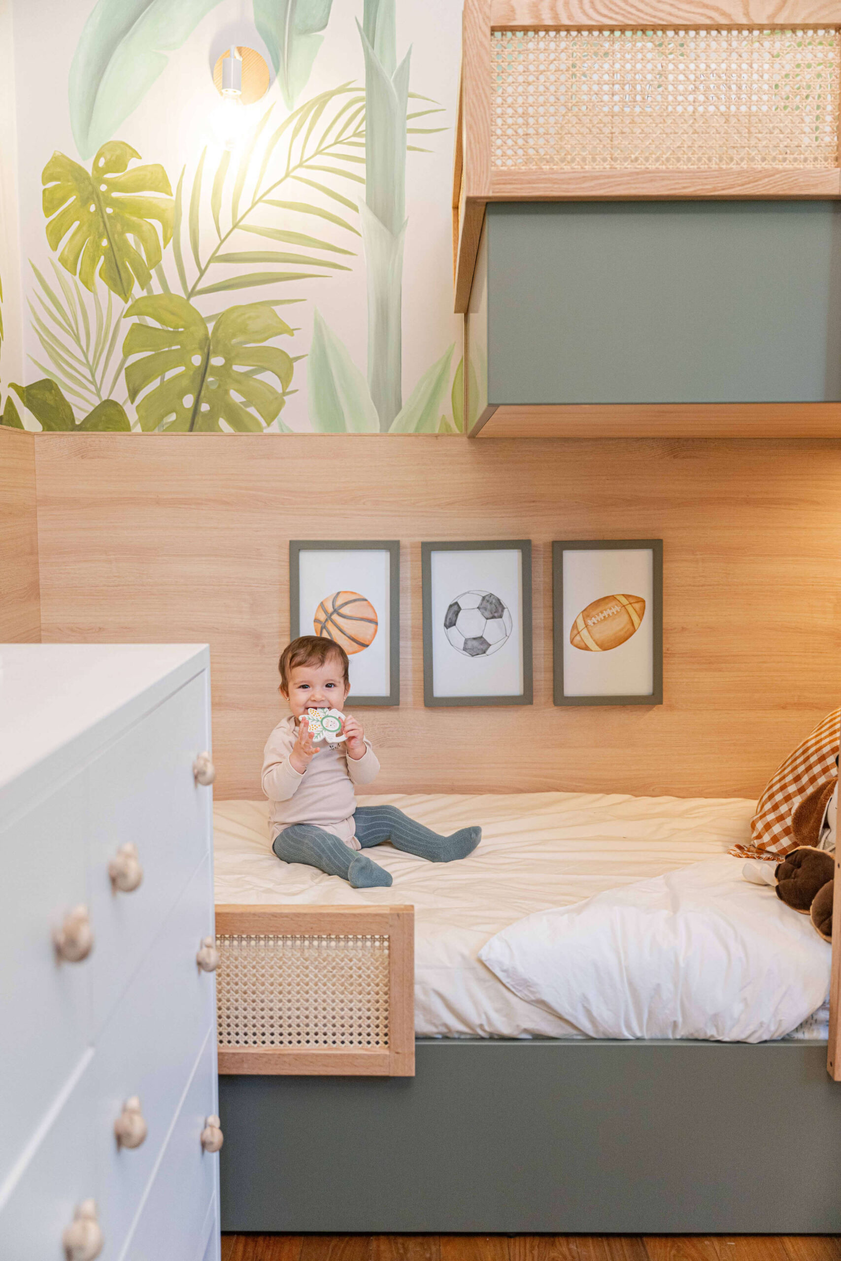 El cuarto fue creciendo y adaptándose con cada etapa, hasta convertirse en un espacio compartido por los tres. Sé que no será para siempre, pero hoy me emociona verlos dormir juntos y disfrutar tanto de este rincón hecho con mucho amor para ellos.