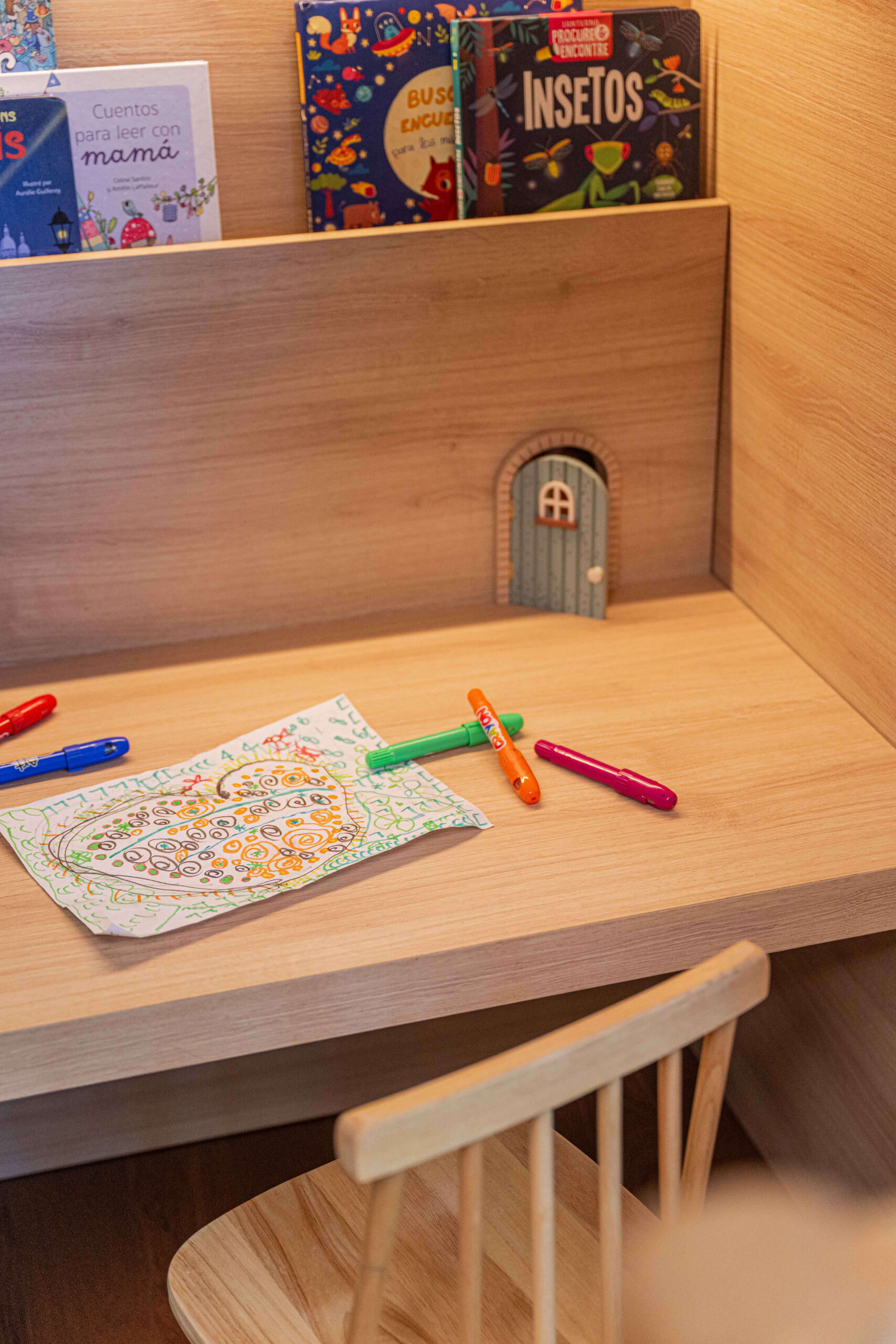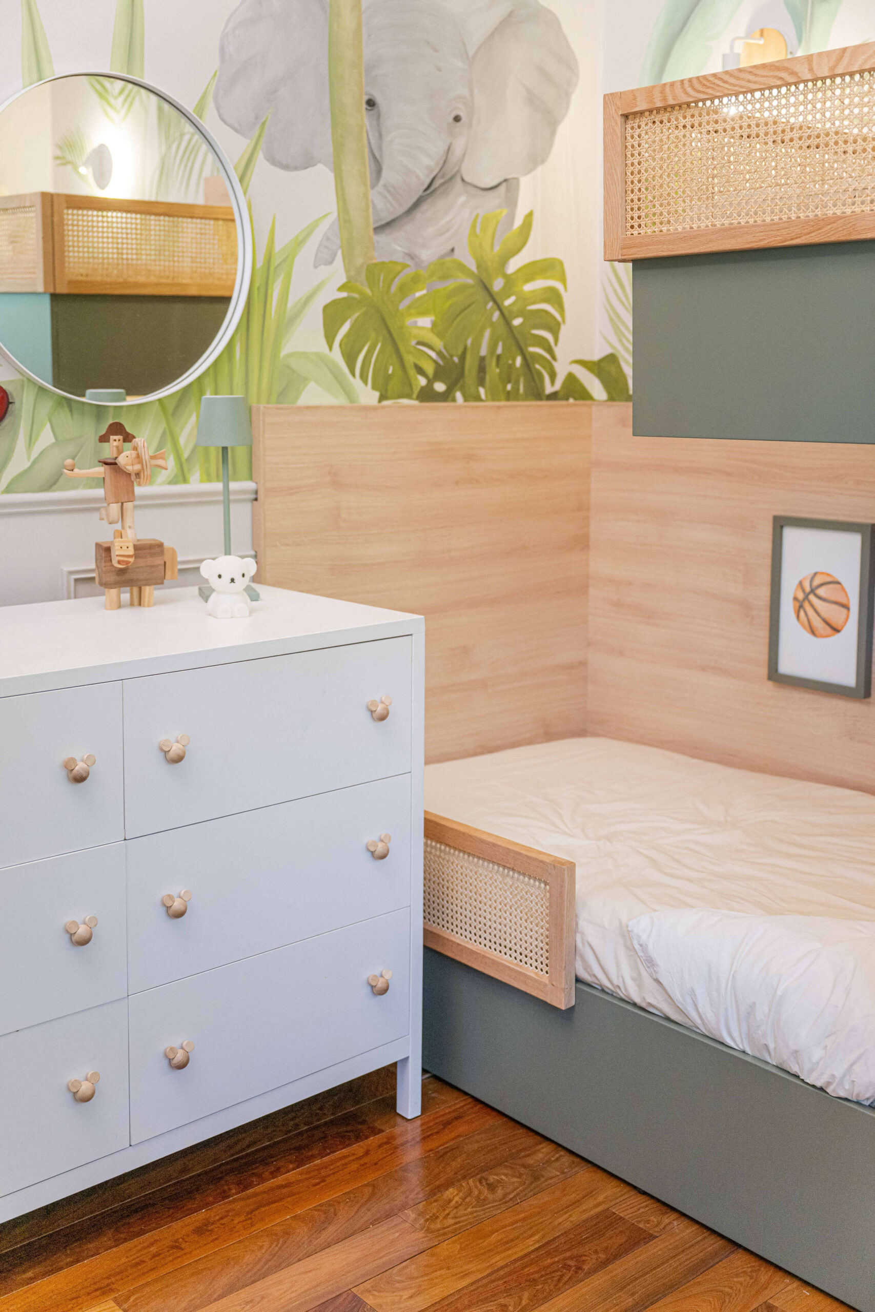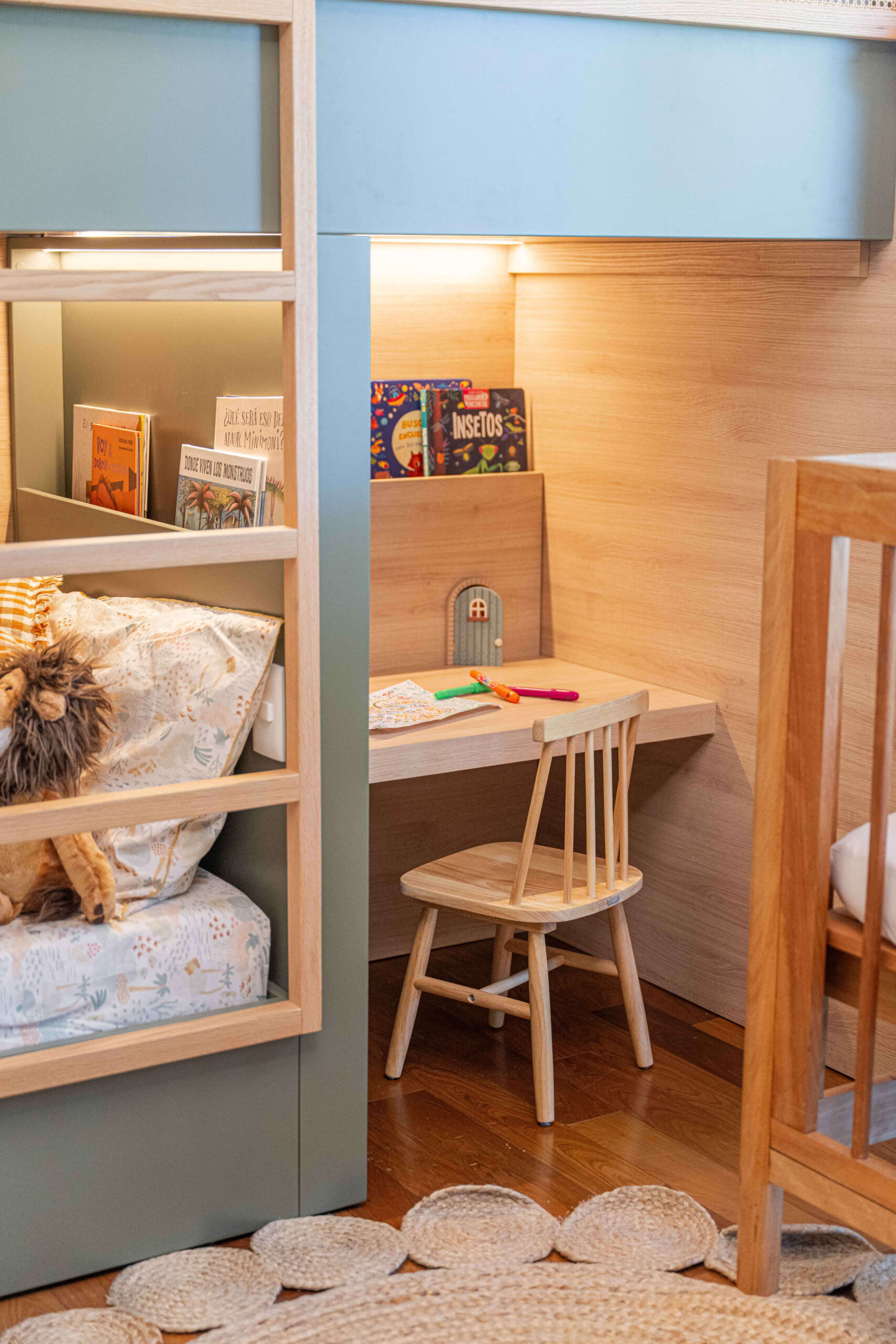 Este proyecto es uno de los más significativos para mí, no solo por lo personal, sino también por el desafío de diseño que representó. Se trata del dormitorio de mis hijos, un espacio que fue transformándose y creciendo junto a nuestra familia.