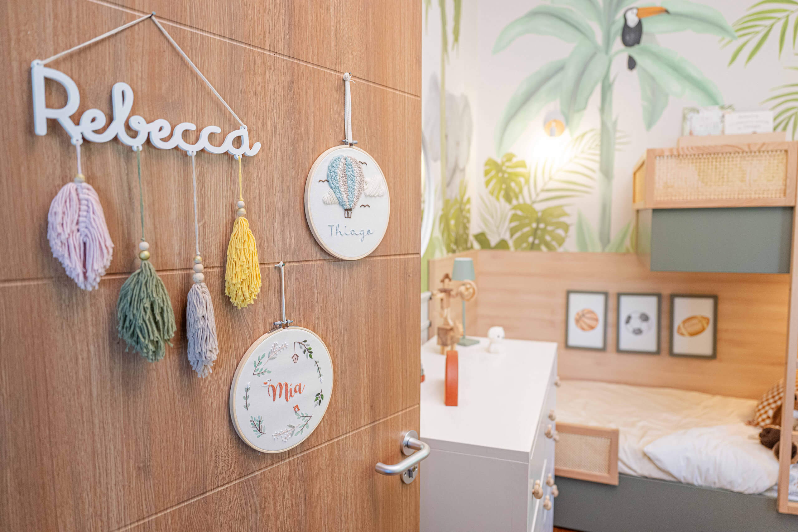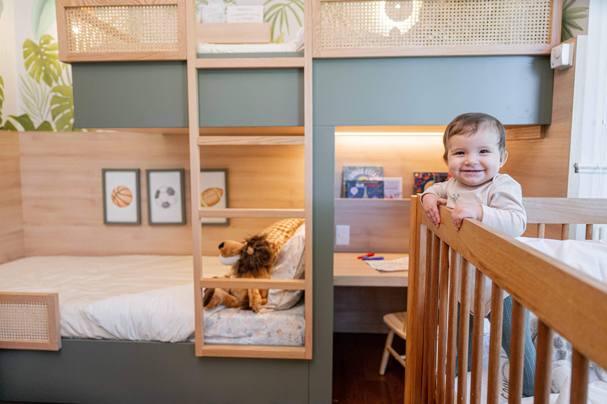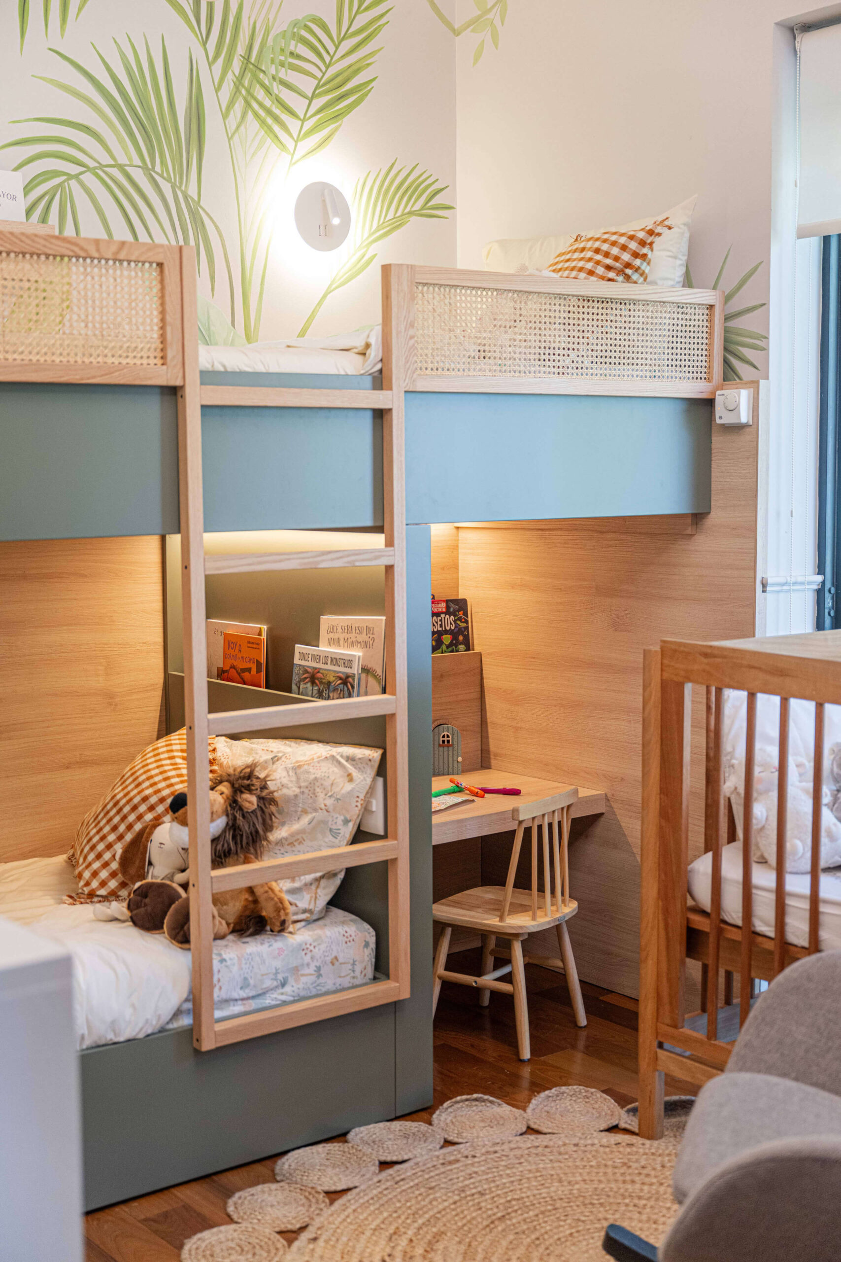 Comenzó con un cuarto vacío y un sueño de familia, que debía adaptarse a las distintas etapas. Con la llegada de Rebecca, se diseñó el primer ambiente con su cuna. Más adelante, cuando nació Thiago, la distribución y el mobiliario se reconfiguraron: la cuna se transformó en su cama y Rebecca pasó a tener una más grande. Finalmente, con la llegada de Mía, el espacio volvió a reinventarse, permitiendo que los tres compartieran el mismo cuarto de manera cómoda y funcional.