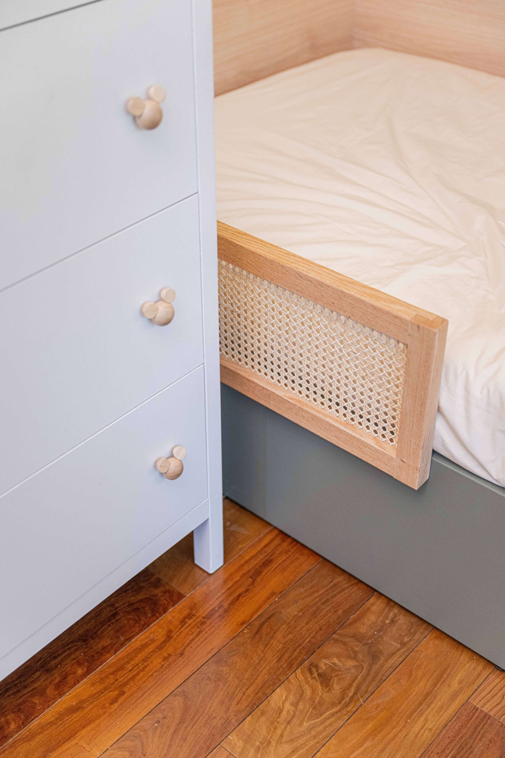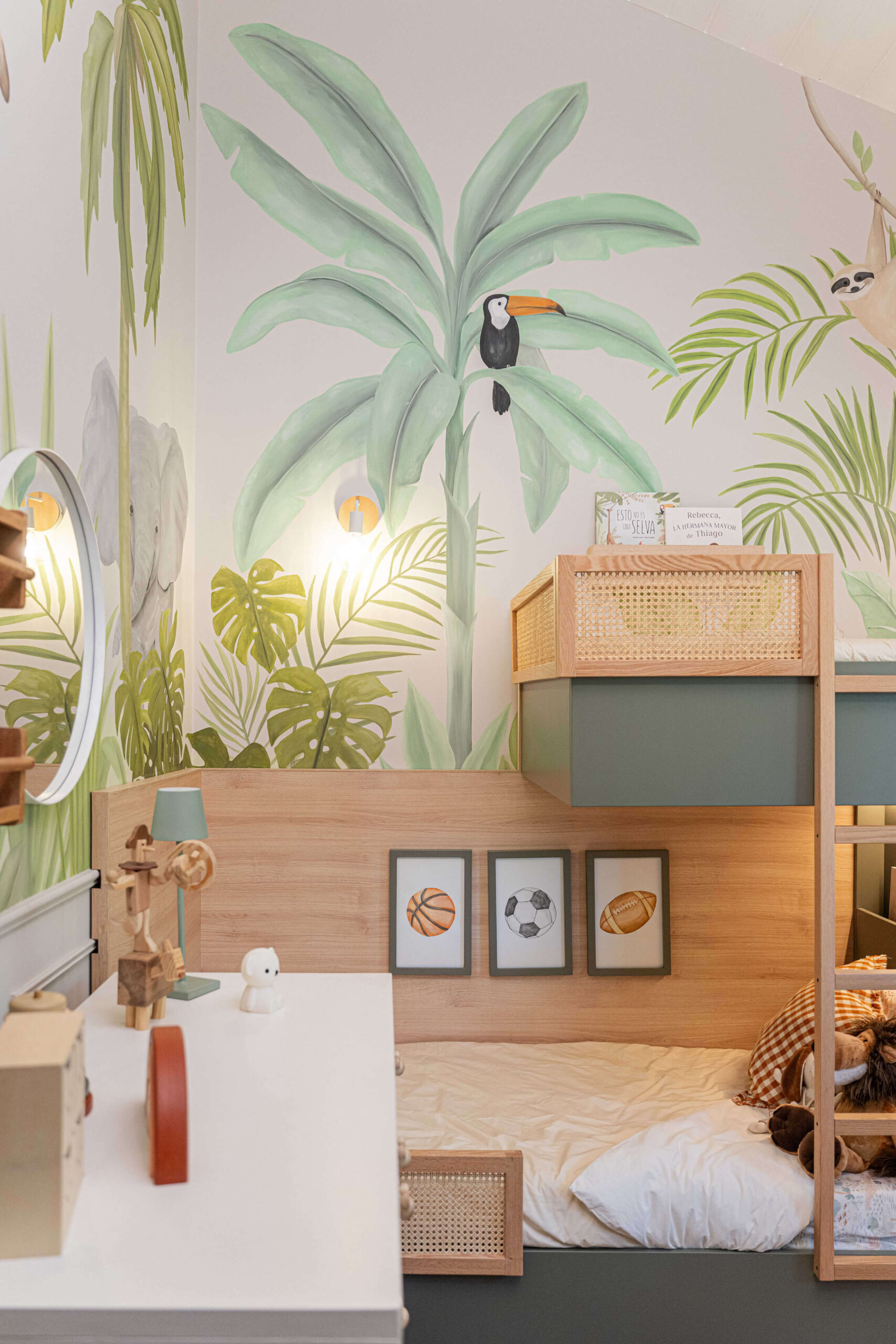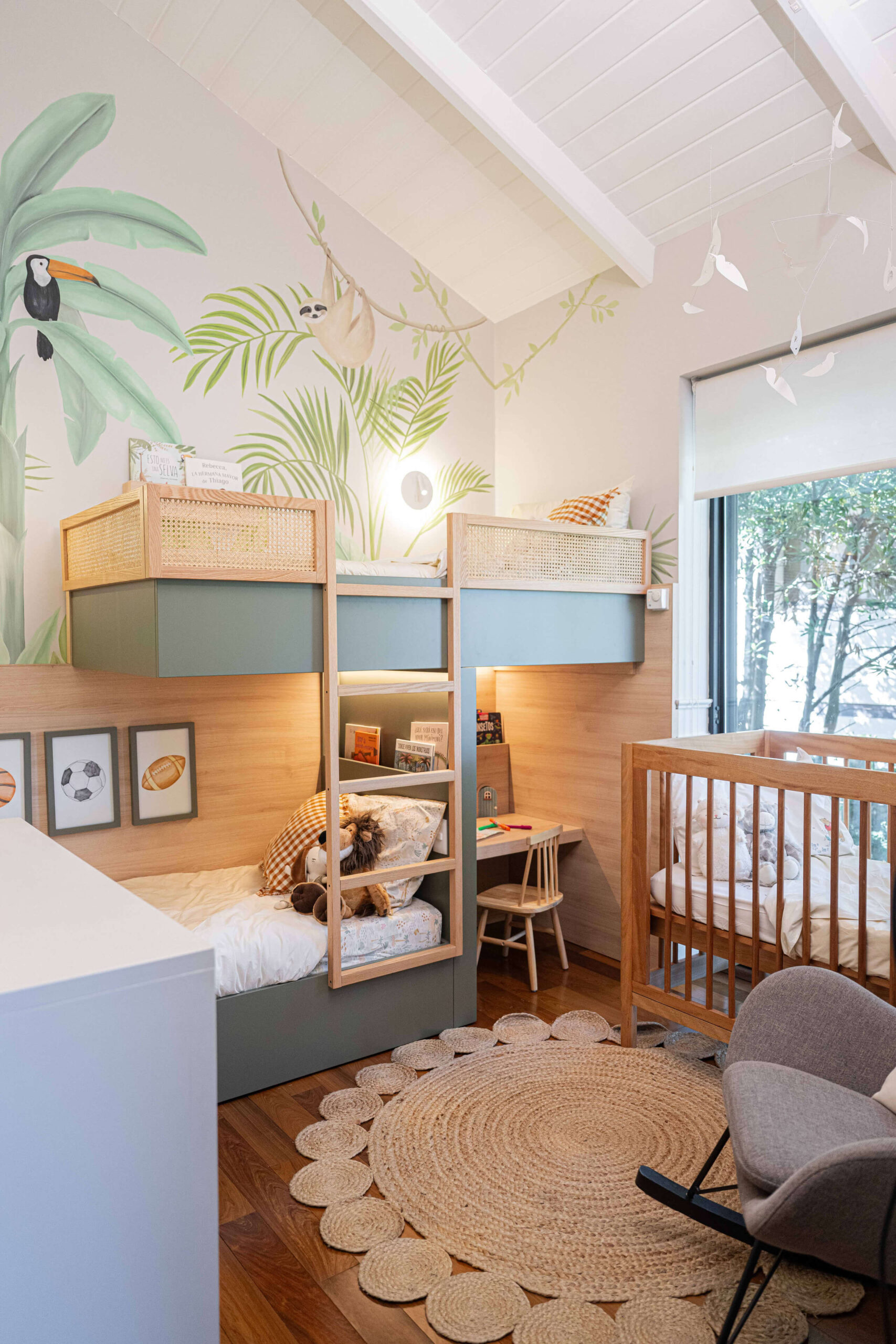 Comenzó con un cuarto vacío y un sueño de familia, que debía adaptarse a las distintas etapas. Con la llegada de Rebecca, se diseñó el primer ambiente con su cuna. Más adelante, cuando nació Thiago, la distribución y el mobiliario se reconfiguraron: la cuna se transformó en su cama y Rebecca pasó a tener una más grande. Finalmente, con la llegada de Mía, el espacio volvió a reinventarse, permitiendo que los tres compartieran el mismo cuarto de manera cómoda y funcional.