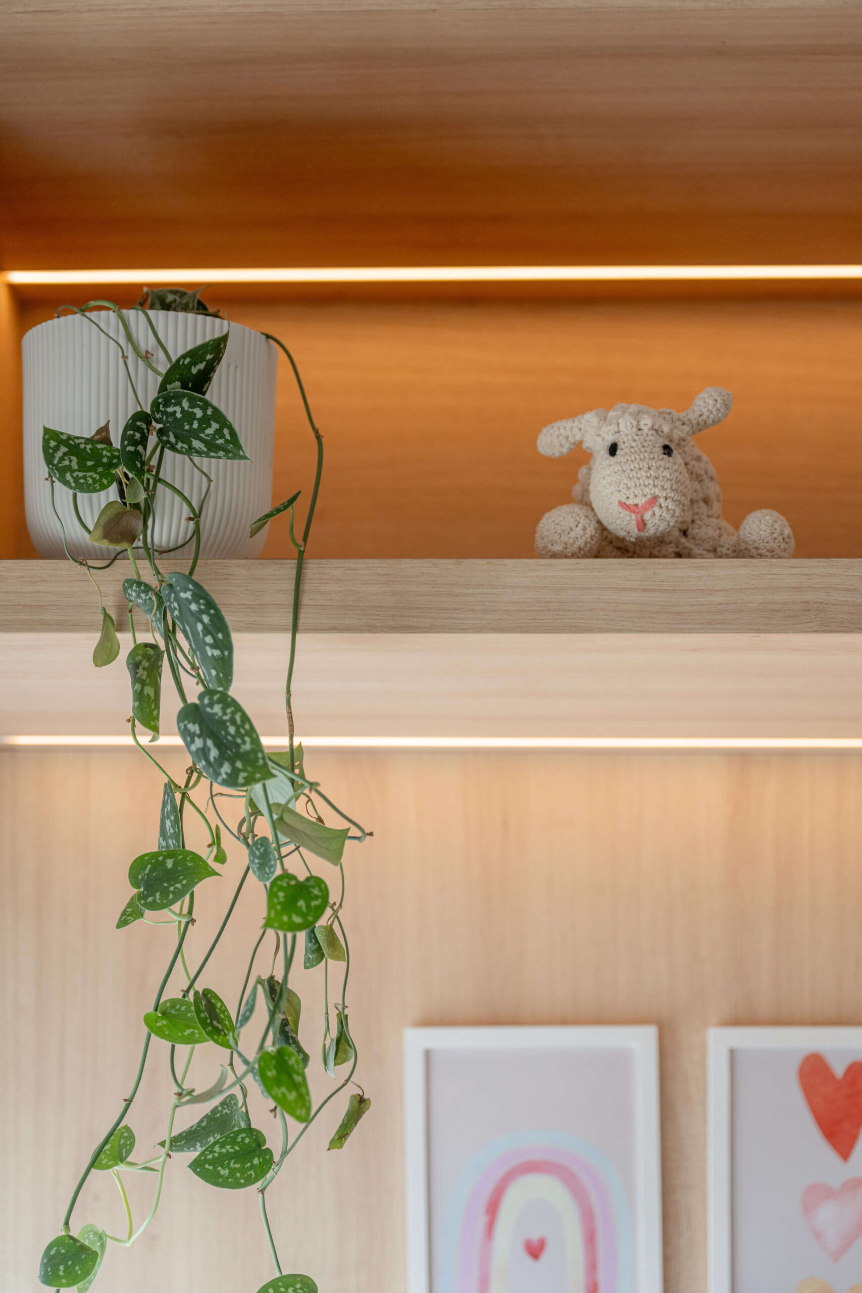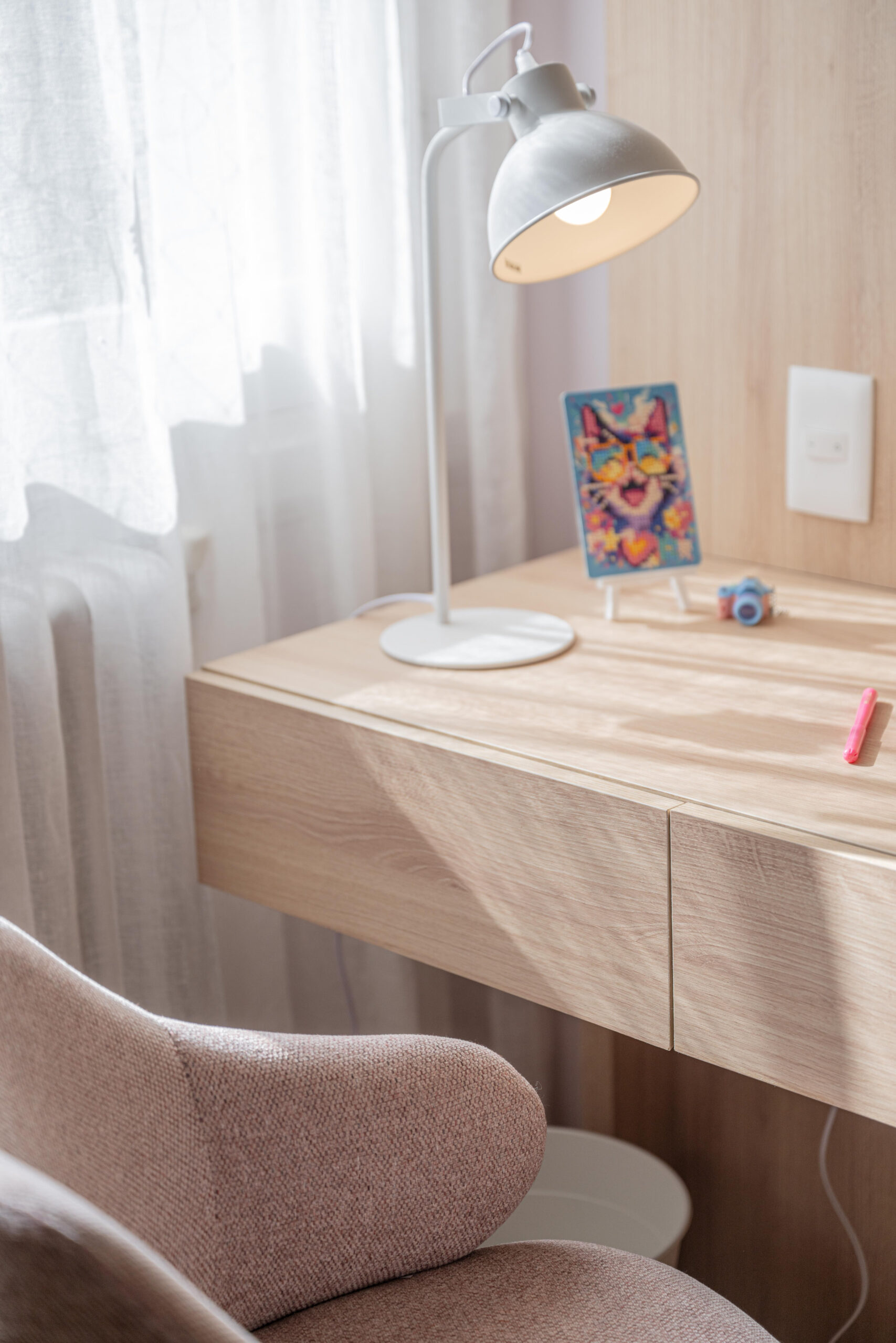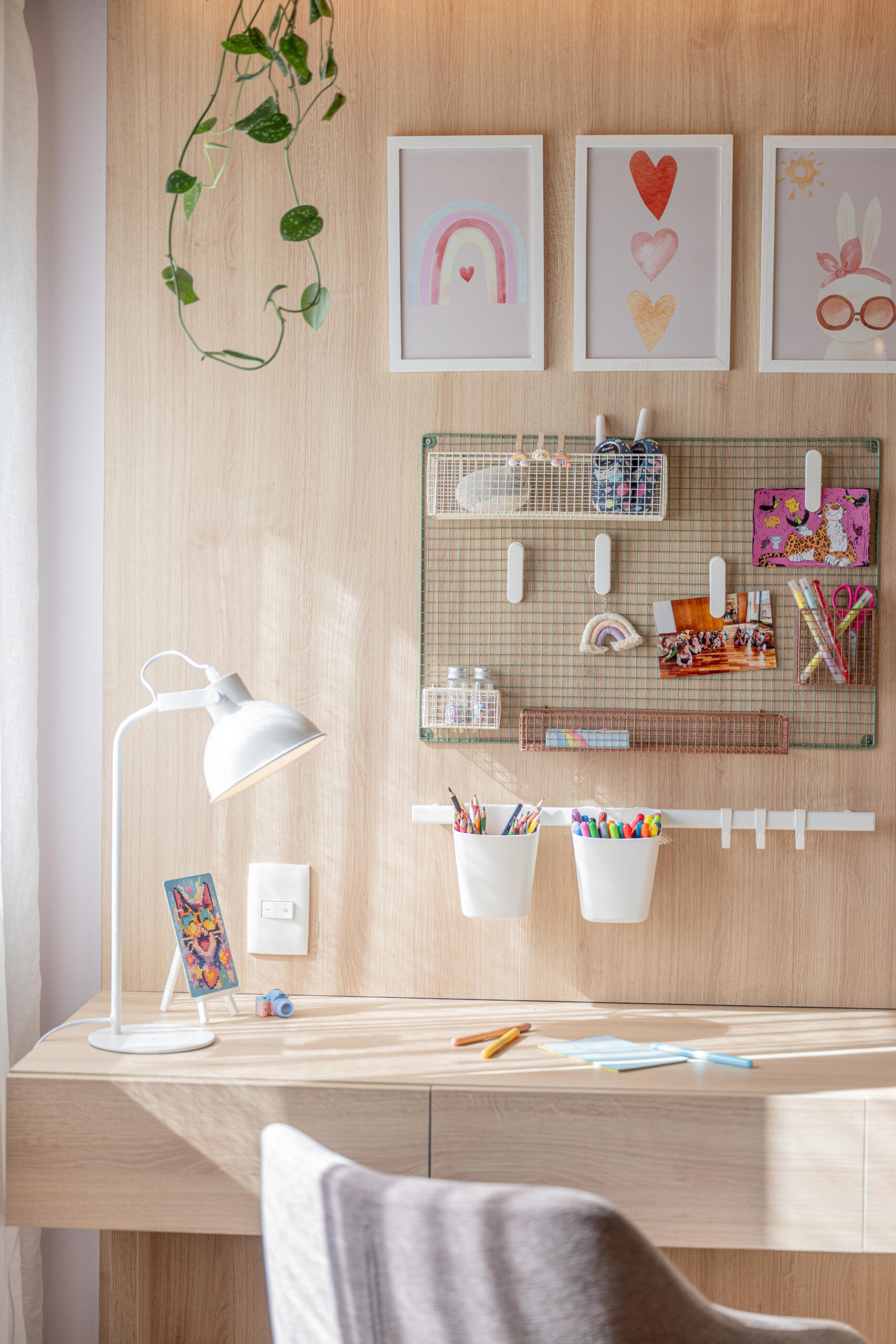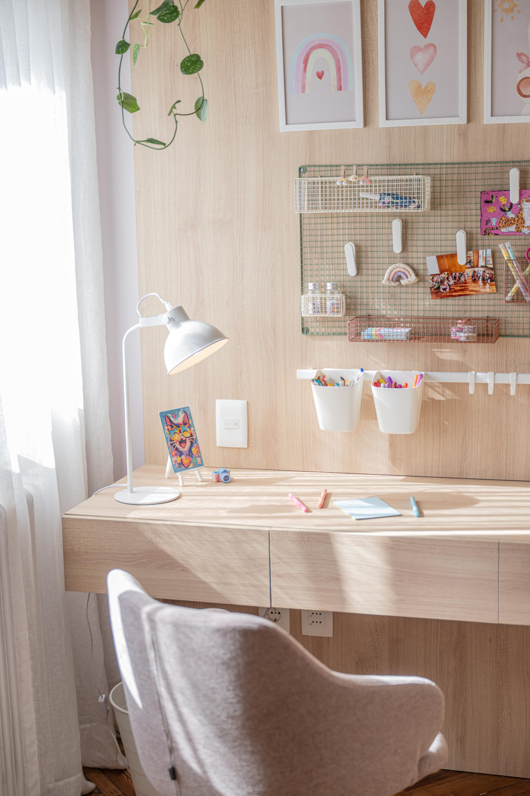 Proyecto de interiorismo integral para el dormitorio de una niña que comenzaba la etapa escolar. El diseño incluyó un espacio de trabajo pensado para sus primeros deberes, integrado a un ambiente lúdico y funcional.