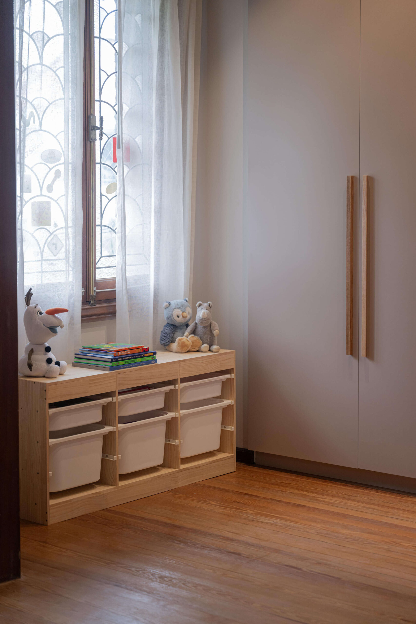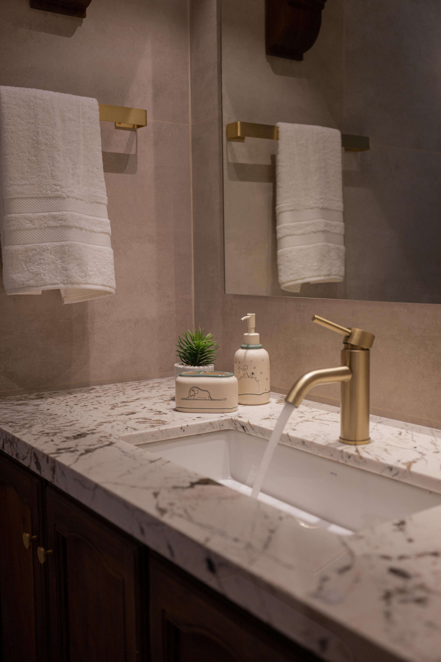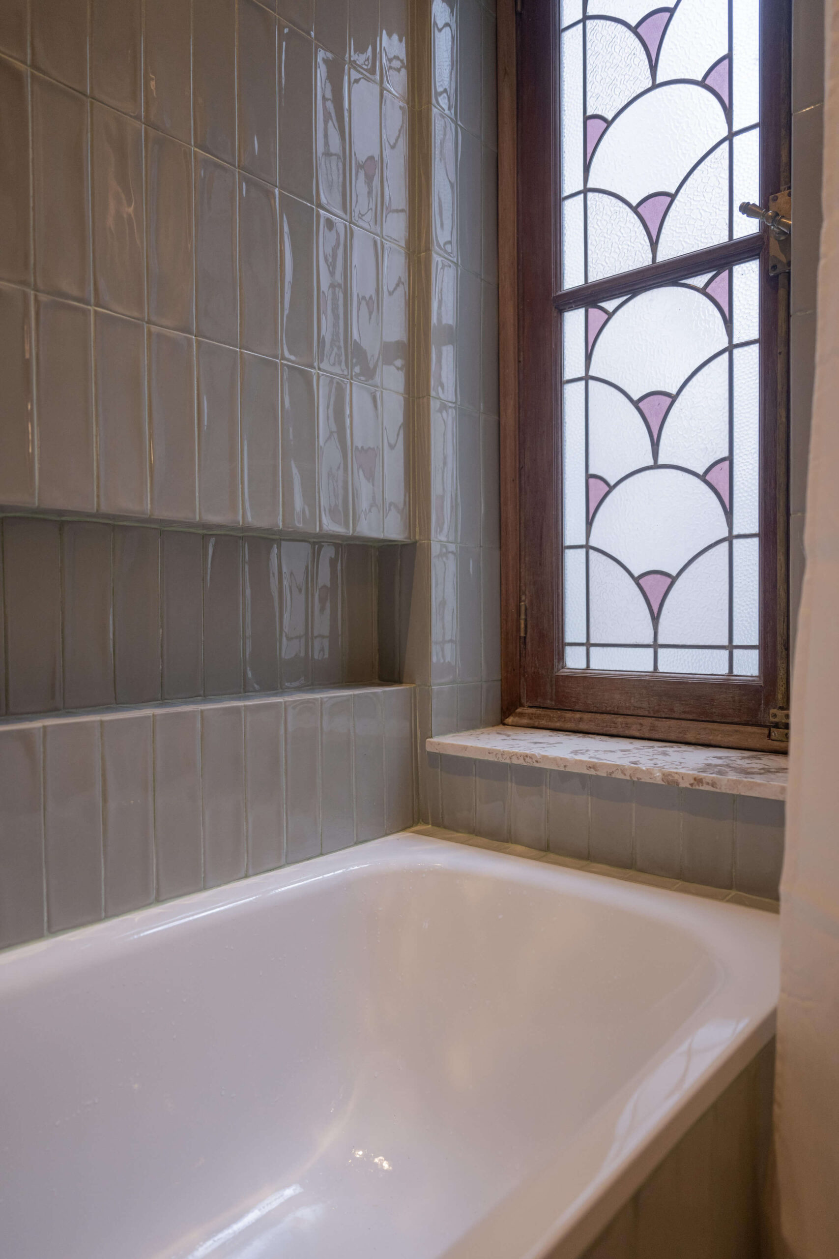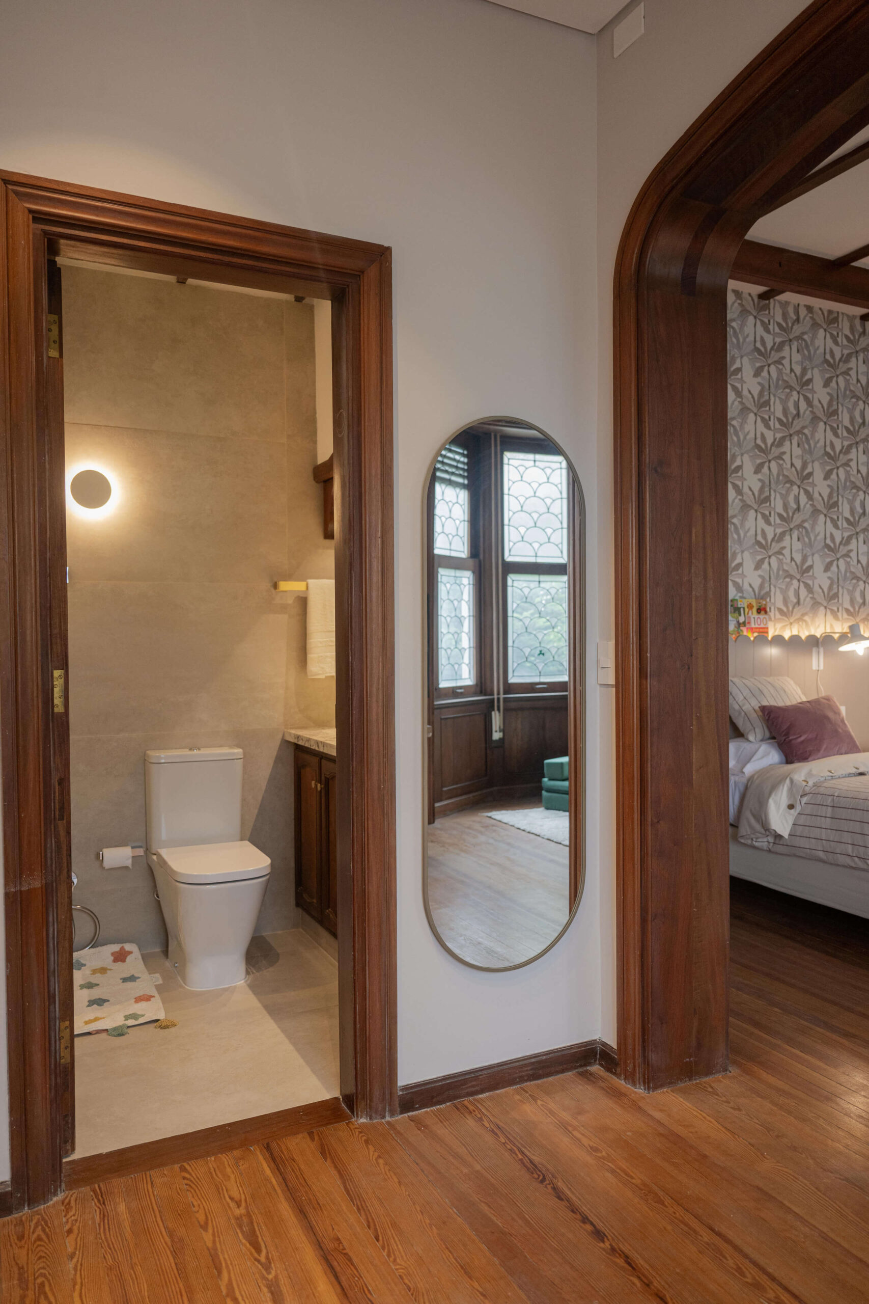 Junto con la arquitecta Victoria Kliche, se renovó por completo el baño, conservando el mueble de la mesada para mantener la estética original de la casa. Además, el dormitorio fue rediseñado en su totalidad, incorporando un nuevo placard que optimiza el espacio de guardado y refuerza la funcionalidad sin perder calidez.