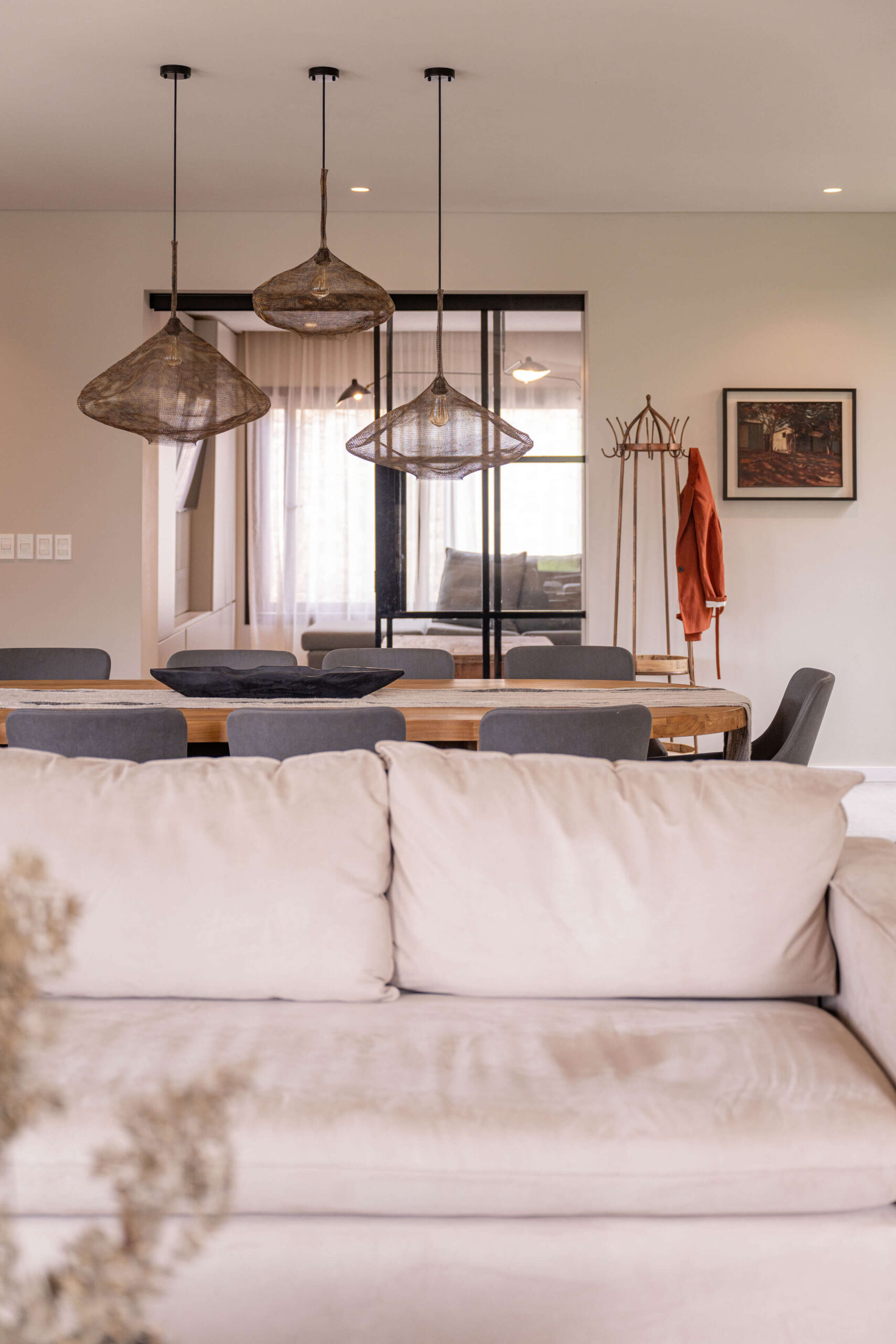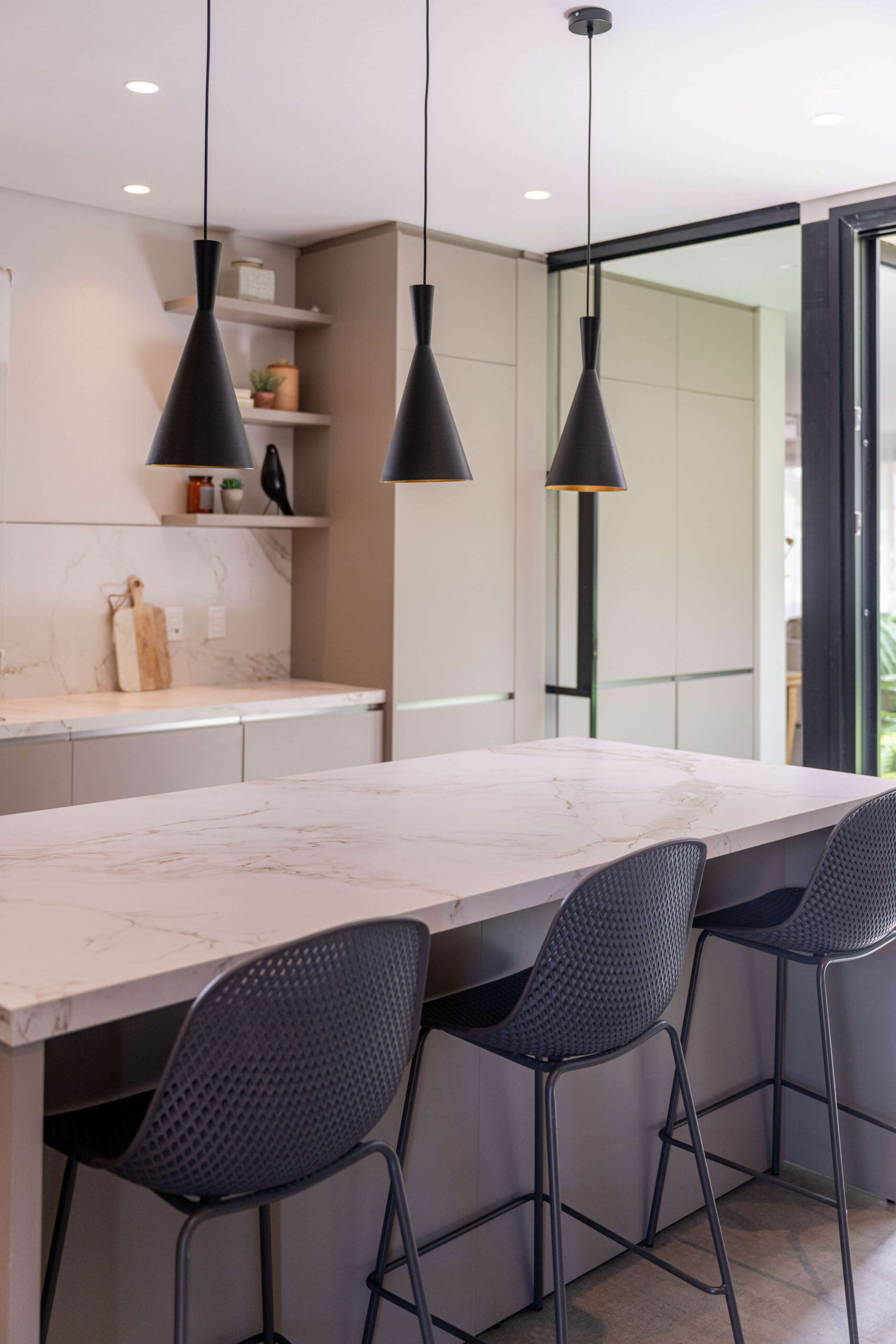 Proyecto de interiorismo integral para una obra nueva desarrollada por el estudio de arquitectura Vivo-Tripodi. El trabajo abarcó el diseño de la cocina, living comedor, dos baños completos, toilette, barbacoa, playroom, dormitorio principal y vestidor, consolidando una propuesta coherente y personalizada en cada espacio de la vivienda.