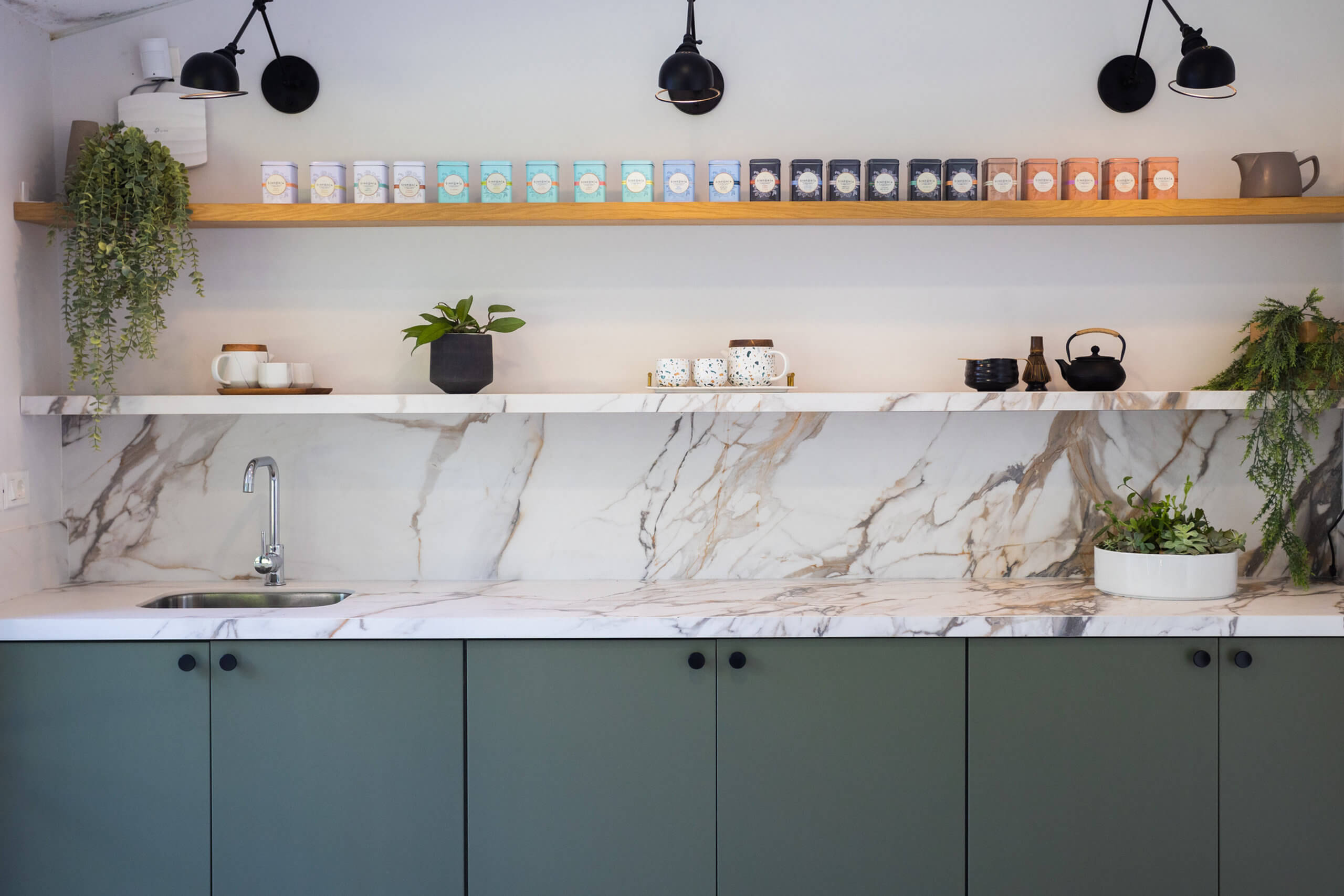 Este fue un gran proyecto donde transformamos por completo una casa abandonada en Carrasco, para convertirla en un local de venta de té con oficinas y planta de fraccionado. Se amplió toda la planta baja uniendo espacios para el salón de ventas, se renovaron cinco baños, se diseñó una sala de reuniones y cinco oficinas. En el antiguo espacio de la barbacoa se creó un área para eventos, charlas y degustaciones.