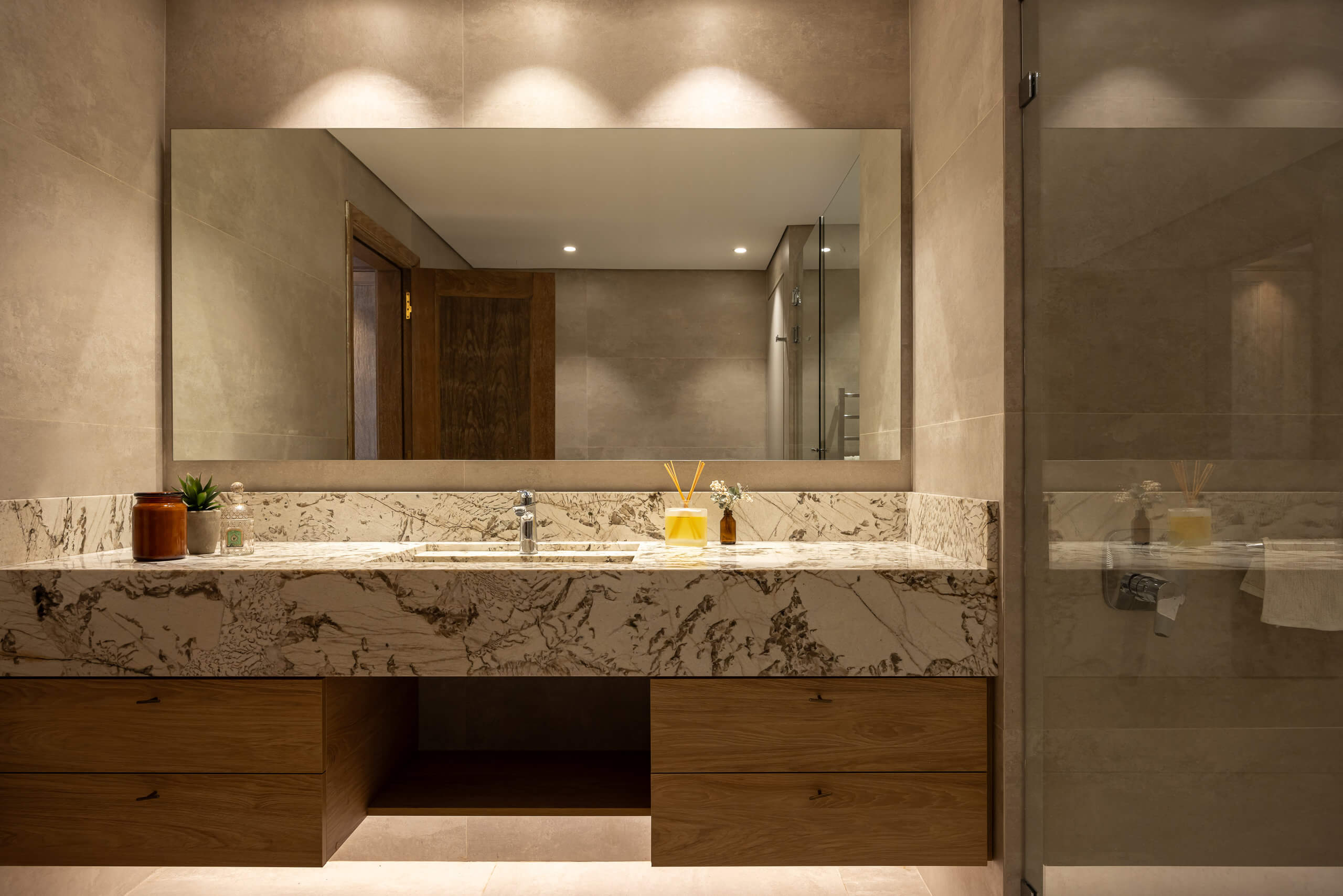 Para este proyecto se realizó una reforma parcial: se trabajó el interiorismo de living, comedor, estar, toilette y dormitorio principal, mientras que la cocina, el lavadero y el baño principal se hicieron completamente a nuevo.
