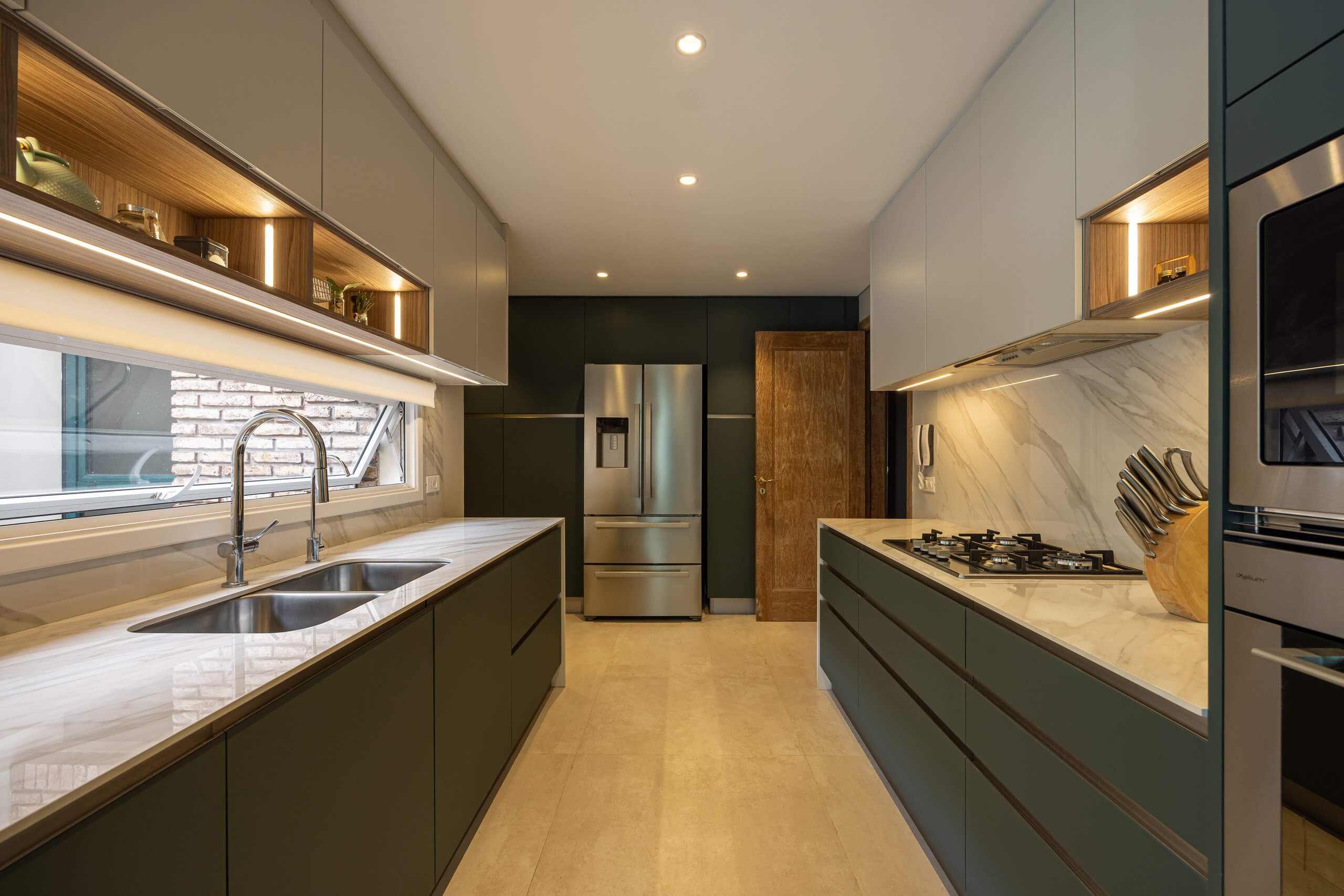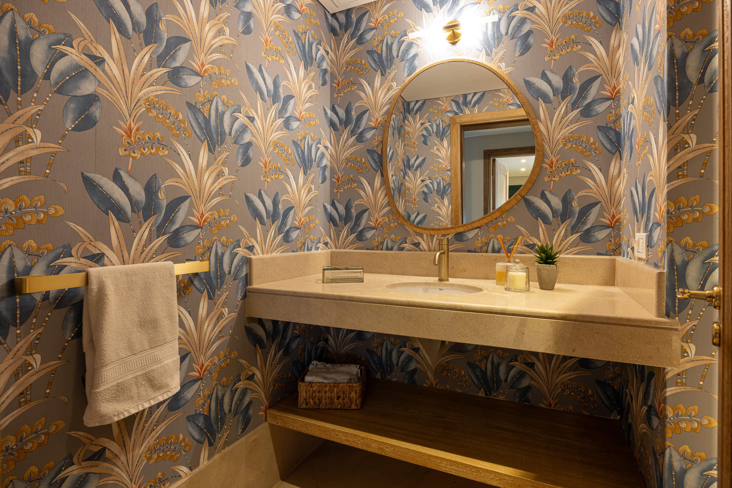 El toilette se transformó sin obra, con papeles, luminaria y grifería nueva; mientras que cocina y baño se diseñaron a medida, priorizando funcionalidad, comodidad y futuro uso.